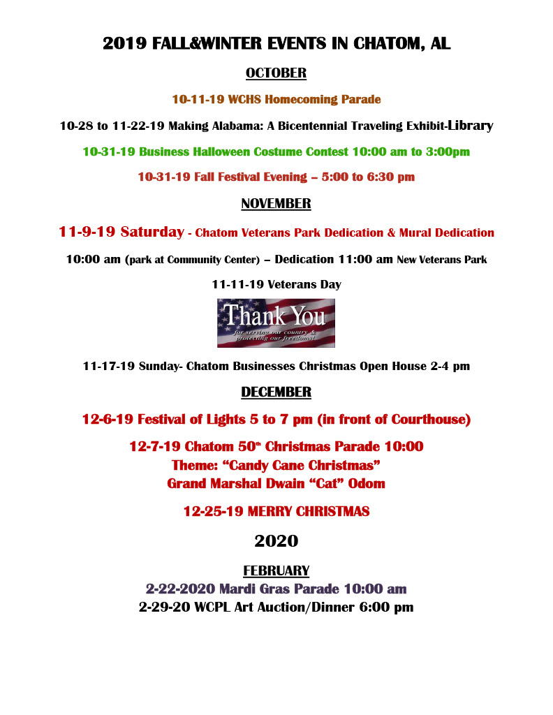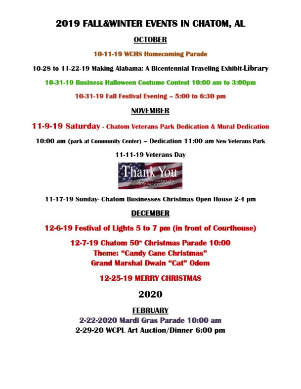 Posted on October 3, 2019. Bookmark the permalink. Comments Off on 2019 FALL EVENTS IN CHATOM1024_1.